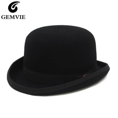 GEMVIE 4 Colors 100% Wool Felt Derby Bowler Hat For Men Women Satin Lined Fashion Party Formal Fedora Costume Magician Hat